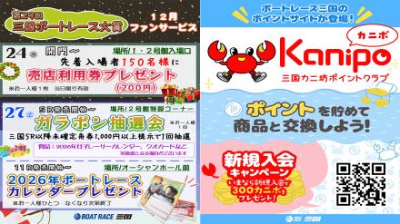 - 当サイト及び予想配信アプリにおいて提供される情報すべてに関して、ボートレース三国、三国観光産業(株)は、一切の責任を負わないものとします。また、当サイト及び予想配信アプリが提供するすべての情報に基づいて被ったいかなる損害・障害についてボートレース三国、三国観光産業(株)は、一切の責任を負いません。
